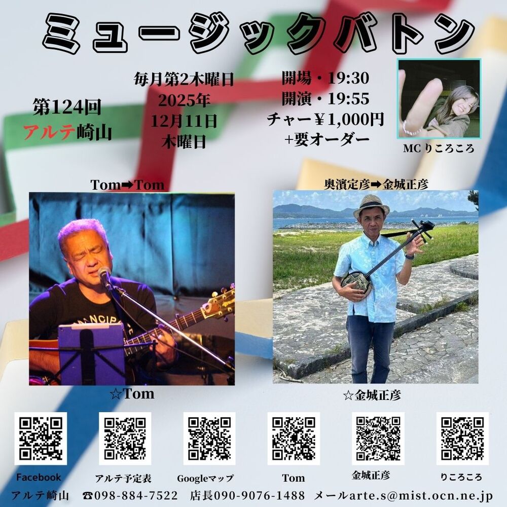 ※アルテ崎山は弾き語りをメインですので出来る限り アコースティックの弾き語り・バンドの方へのバトンよろしくお願いします
