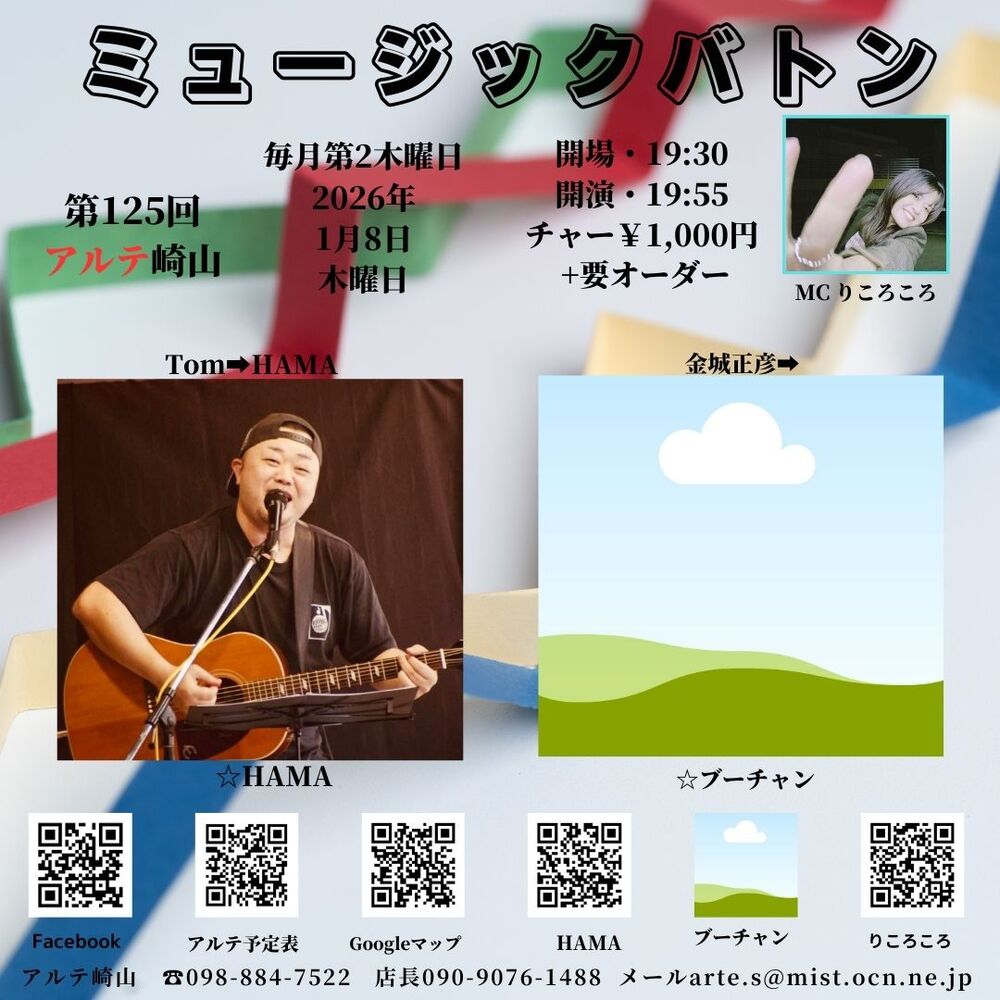 ※アルテ崎山は弾き語りをメインですので出来る限り アコースティックの弾き語り・バンドの方へのバトンよろしくお願いします